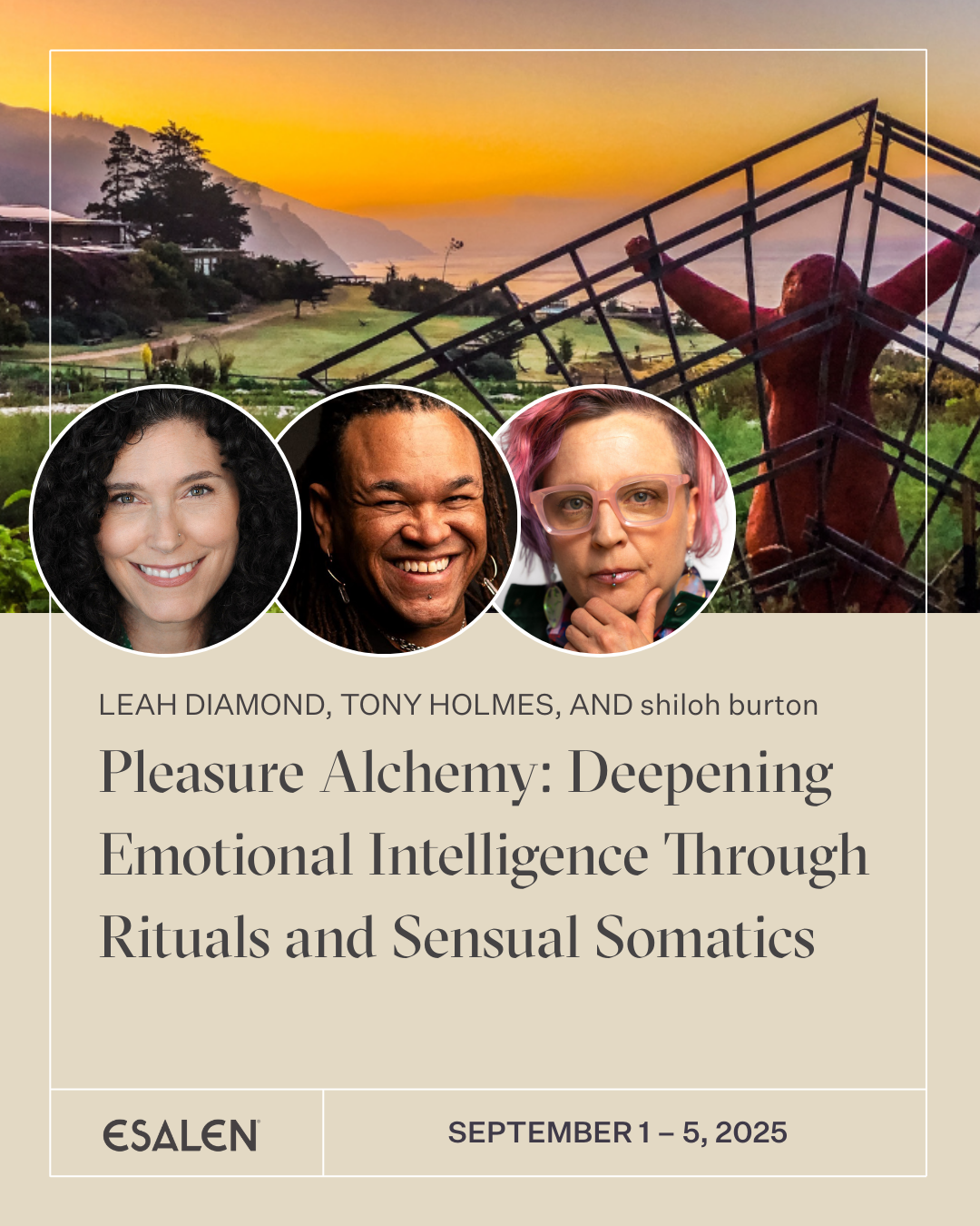 Esalen is a creative laboratory, an incubator of human potential and self-actualization. The Big Sur campus is a community-created, co-stewarded space that resides on sacred land. Esalen is a nourishing container for visitors, guests, and faculty curious to explore some of what works and some of what doesn’t in the ongoing search for individual and collective growth, transformation, and healing.